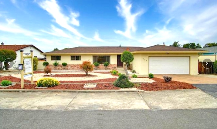 Here is our parents’ Hollister house as it appeared in real estate listings. Notice the “for sale” sign! We were relieved it sold quickly.