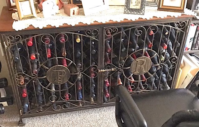 Here is Peggy’s beloved wine jail relocated to her living room in assisted living.